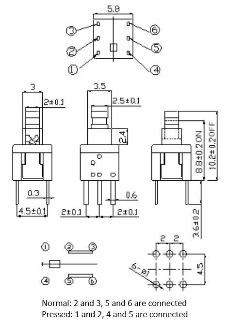 Der 5,8 mm große taktile Druckschalter mit Sperrfunktion und hohem Kopf ist ein 5,8 mm großer Druckknopfschalter, der sowohl Momentan- (selbstrückstellende, nicht verriegelnde)