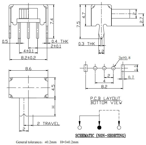 No IP Rating3 mm erhöhter Schiebebetätiger-Kippschalter für elektronische Schaltung